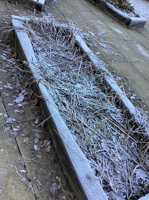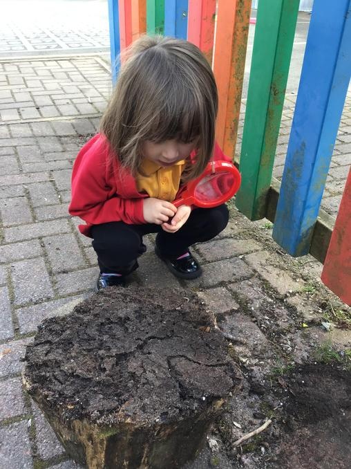 The children were out on the school field looking for signs of winter; finding ice in the mud kitchen and the water tray, frost on the leaves and branches and making footprints on the frosty grass.