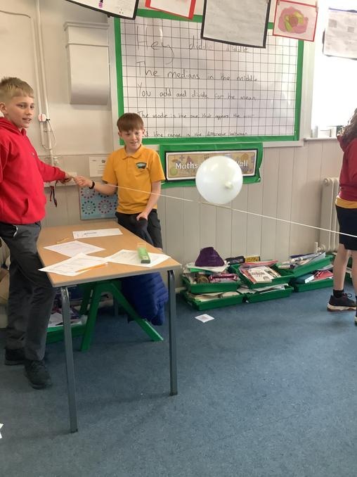 Class Three is exploring friction by investigating balloon rockets- Summer 2023